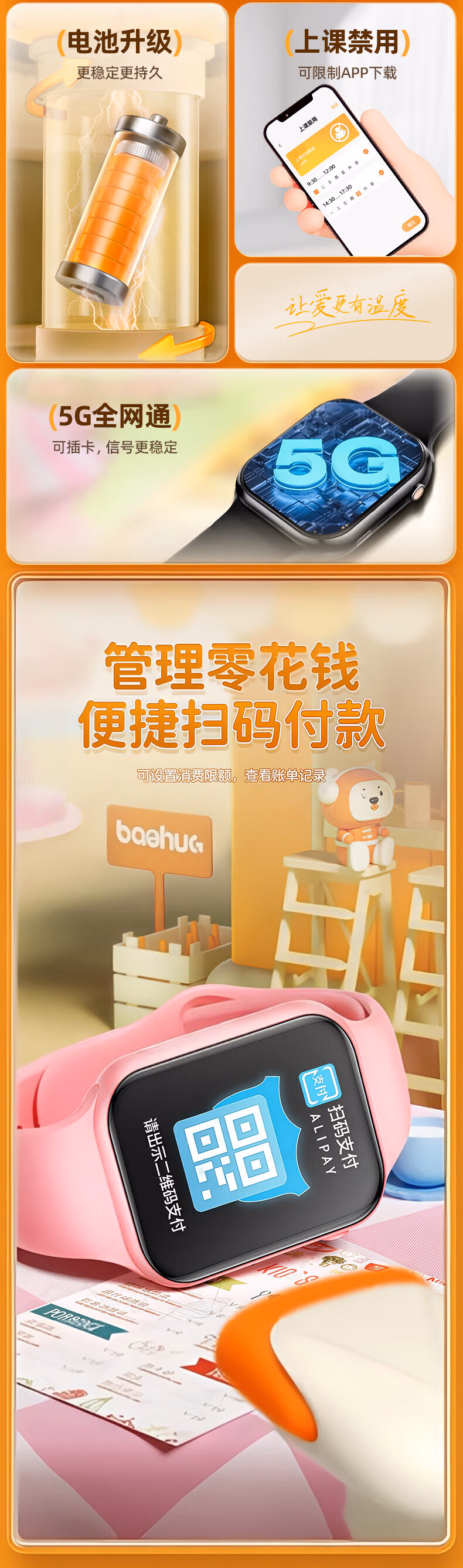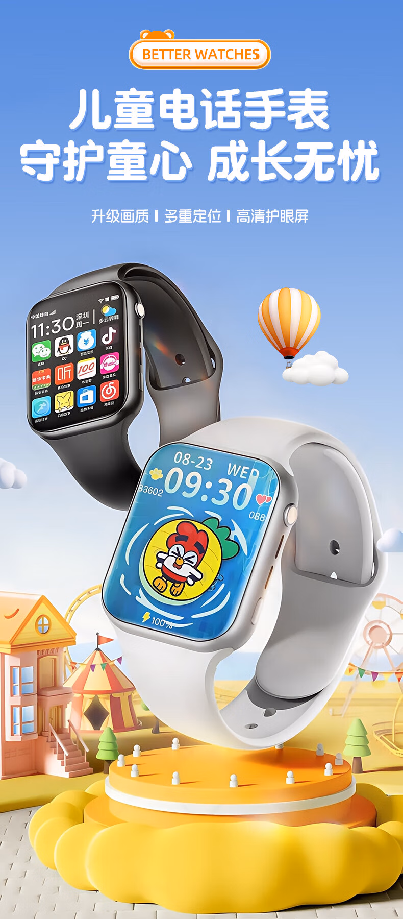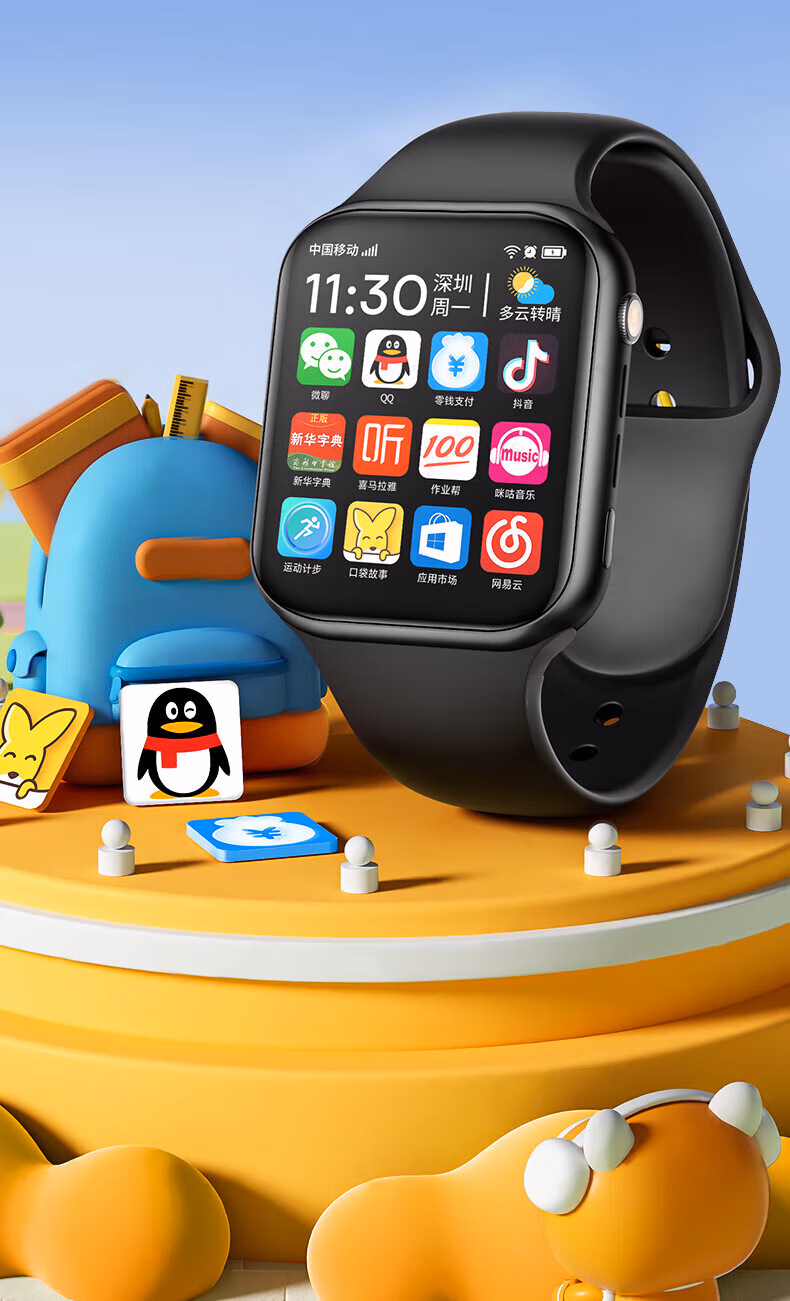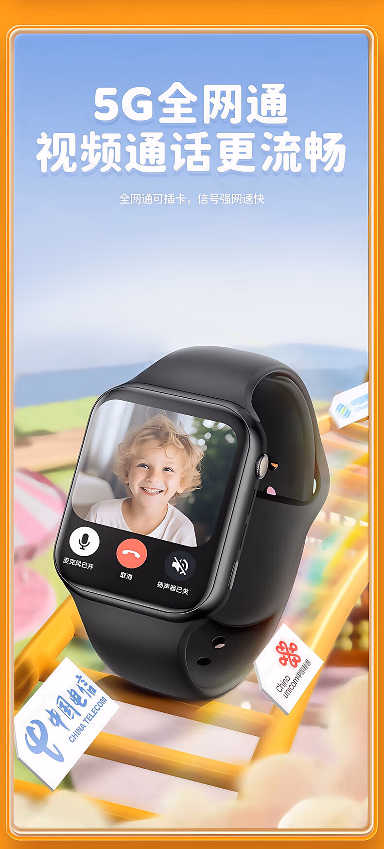 WMWU适用儿童电话手表高清5G卡全网通防水可插卡定位小学初高中生青少年男女孩智能手表 升级黑【续航升级+零钱支付+视频通话+定位+微聊】
